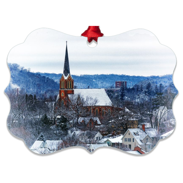 Decorah Iowa Aluminum Ornament, First Lutheran in Winter