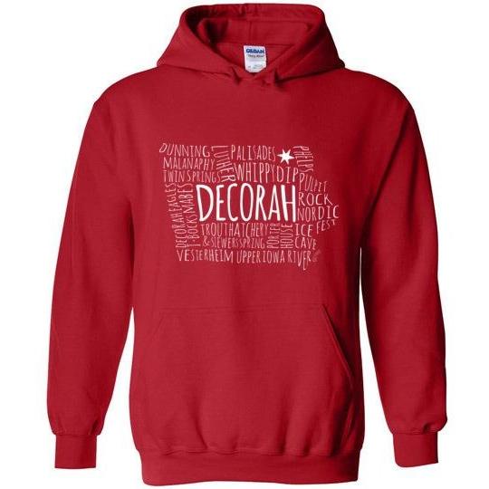 Decorah Hooded Sweatshirt Typography Map, Light Text on Dark