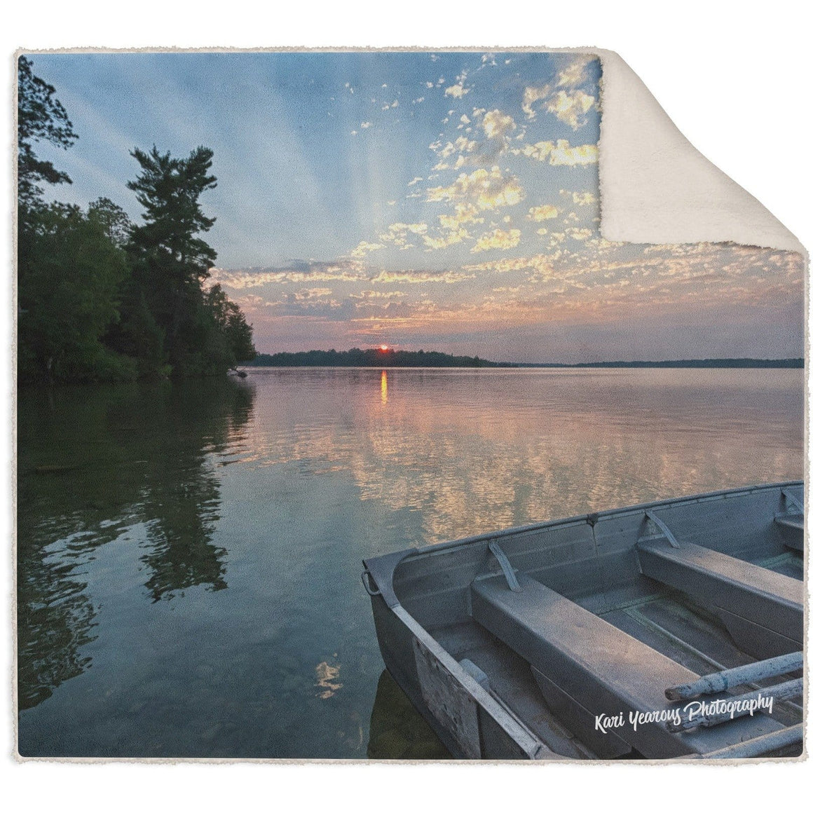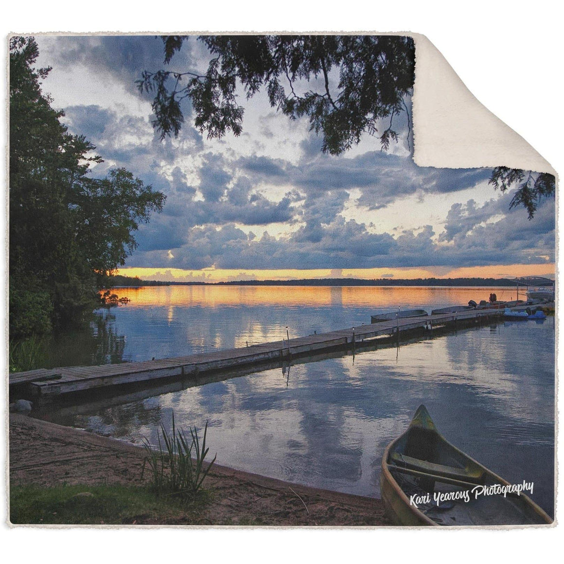 Blanket, Sherpa Fleece, Deer Lake Minnesota Sunset with Canoe