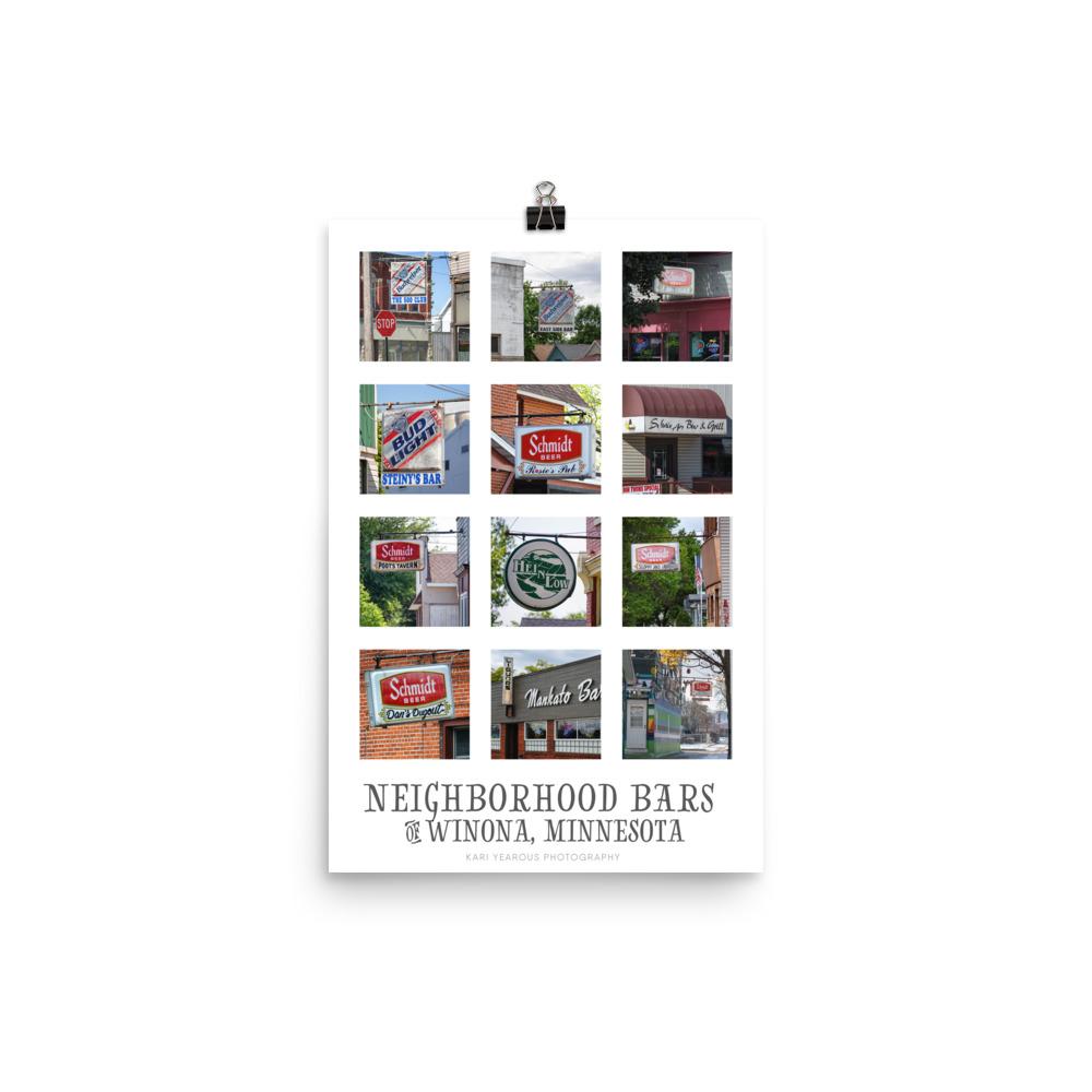 Poster Neighborhood Bars of Winona Minnesota, 12" x 18"