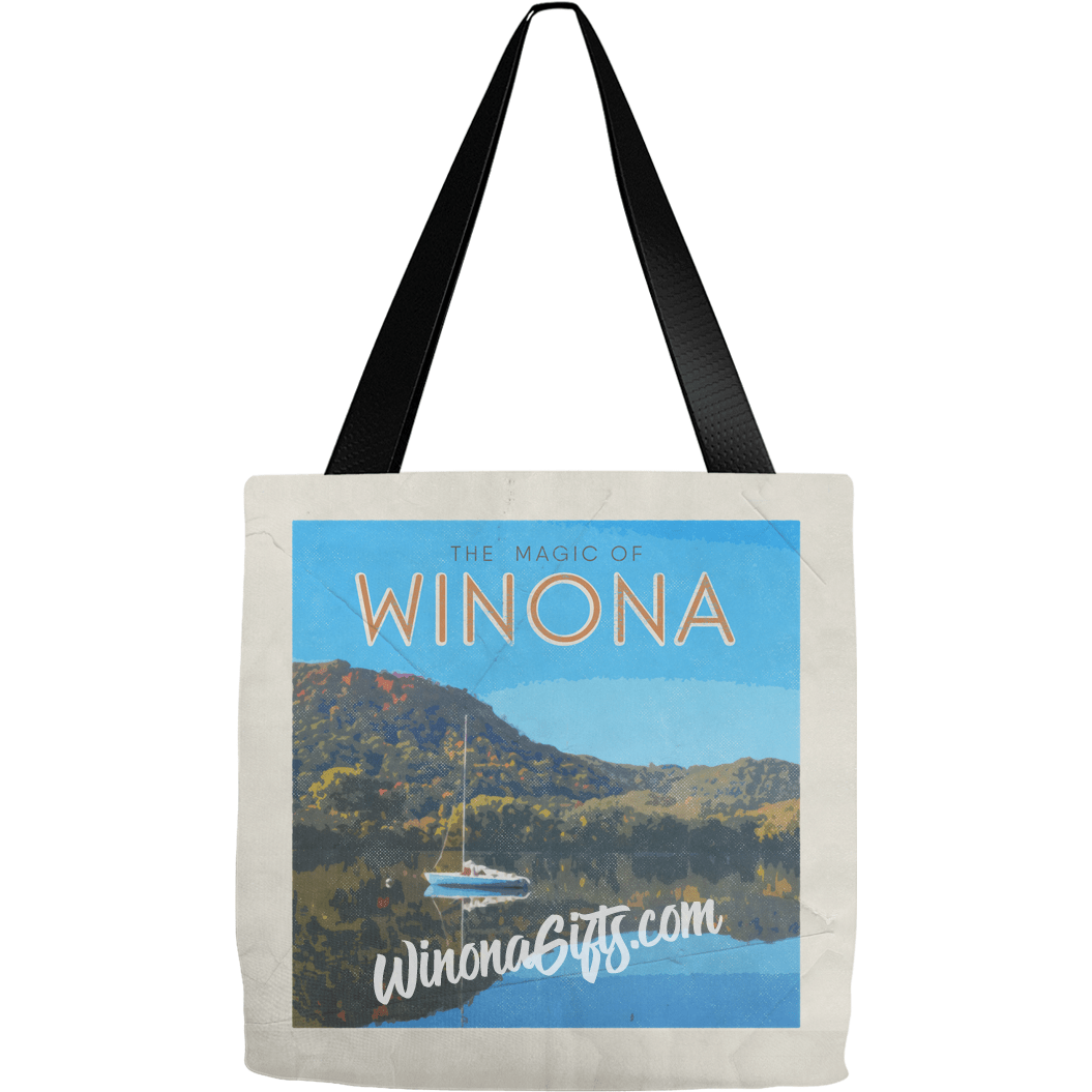 Tote Bag Winona MN Vintage Sailboat Travel Poster Design