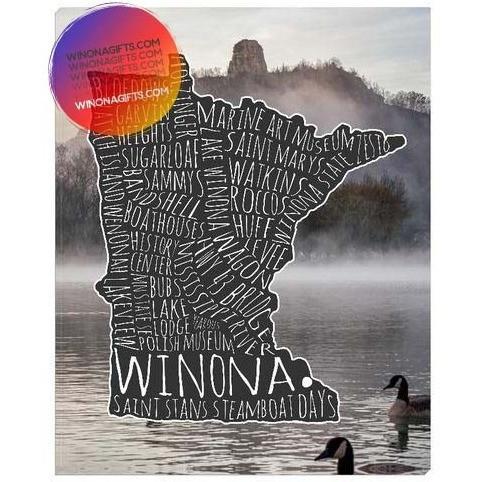 Winona MN Canvas Wrap Typography Map With Sugarloaf Geese, 8x10, Heavy Traffic