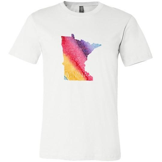 Winona Minnesota T-Shirt Typography Map, Rainbow Watercolor, Unisex T-Shirt