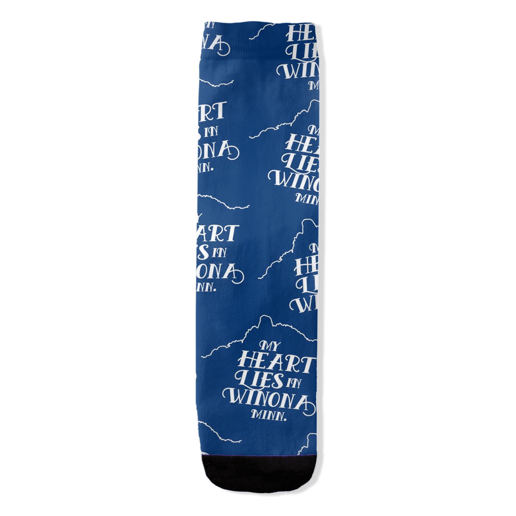 All-Over Print Socks My Heart Lies in Winona Minn, Dark Blue
