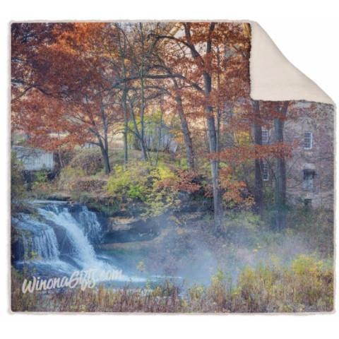 Cuddle up with this classic Pickwick, Minnesota, scene featuring Pickwick Mill in Pickwick, Minnesota. Image is printed on a soft, smooth side of the blanket; the other side is soft and warm sherpa.