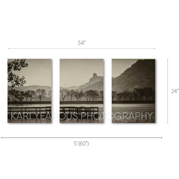 Three canvas wraps at $120/each for size 16" x 24". Canvas wraps are 1.25" deep and come ready to hang.