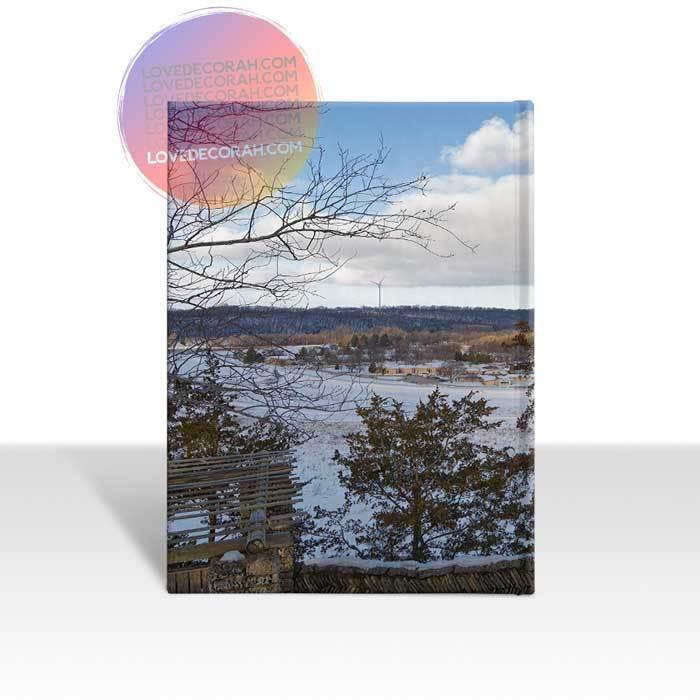 This hardcover Decorah journal features a sturdy, beautiful cover and 64 lined sheets (128 'pages'), 5 inches by 7 inches in size. High quality photograph of Phelps Park Overlook in Decorah, Iowa, provides the front and back cover of this Decorah journal.