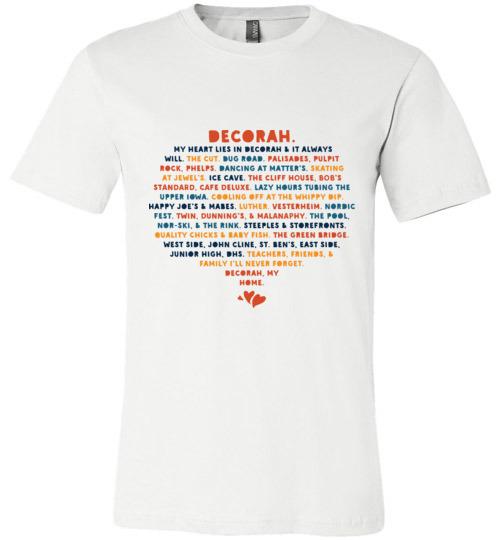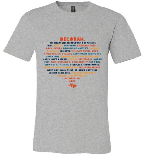 A quality short-sleeve t-shirt in youth sizes, featuring many beloved Decorah memories.