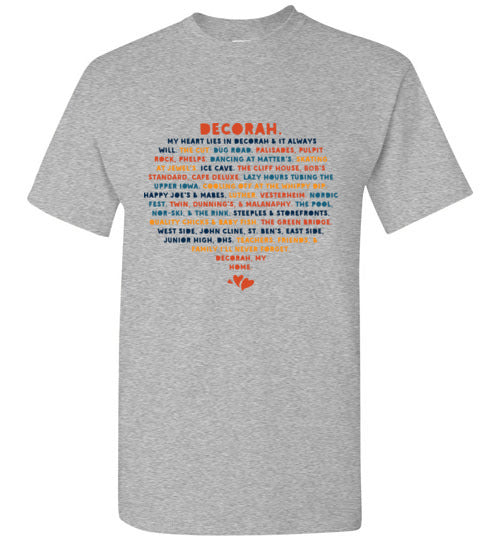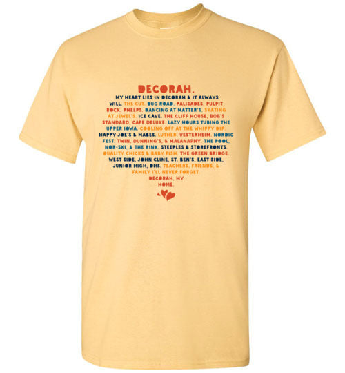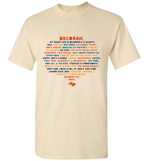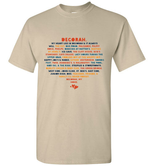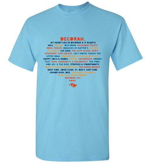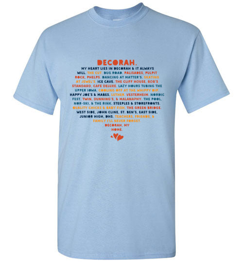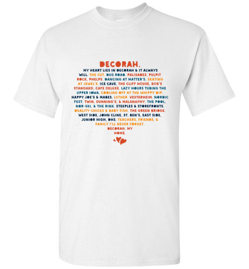 Declare your love for Decorah with this totally unique and heartfelt design. Prices include free shipping to continental U.S.