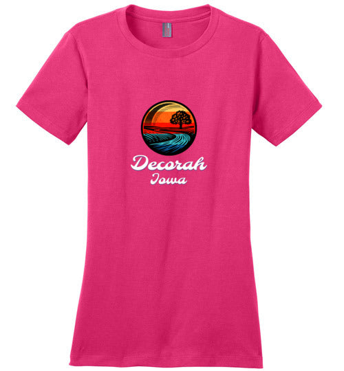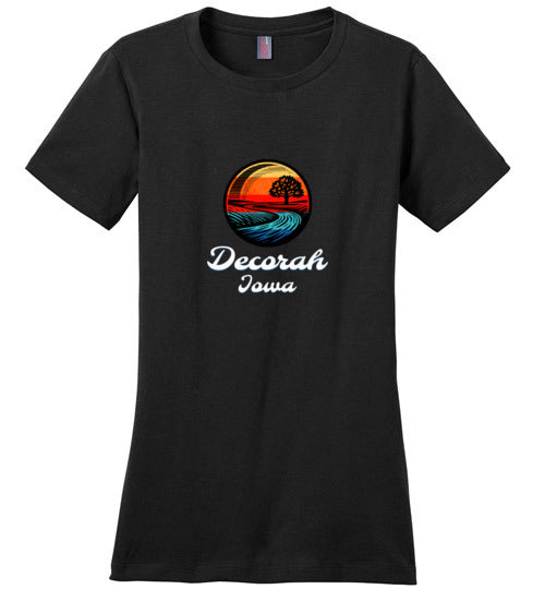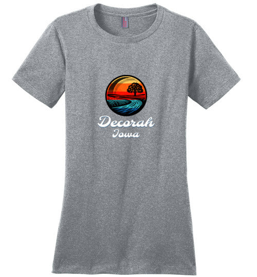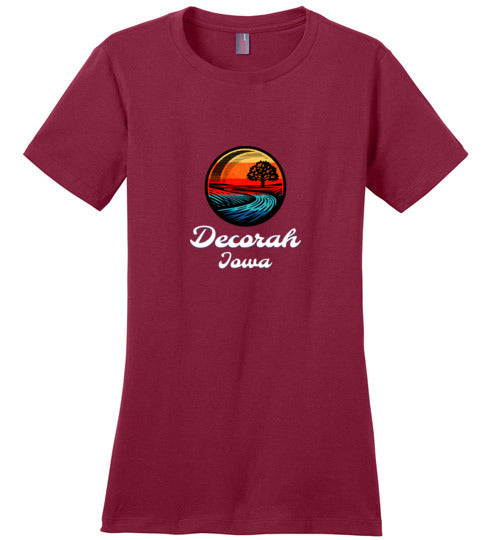 Crafted from luxurious 4.3-ounce, 100% ring spun combed cotton, this stylish Decorah-themed crew neck tee offers unparalleled softness and quality. The timeless design with a classic crew neckline ensures a flattering, comfortable fit in more standard sizing (not as skin-tight as many women's styles).
