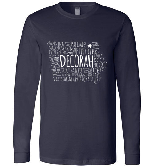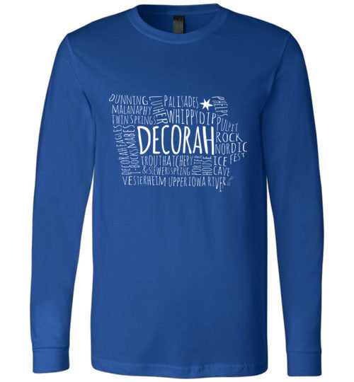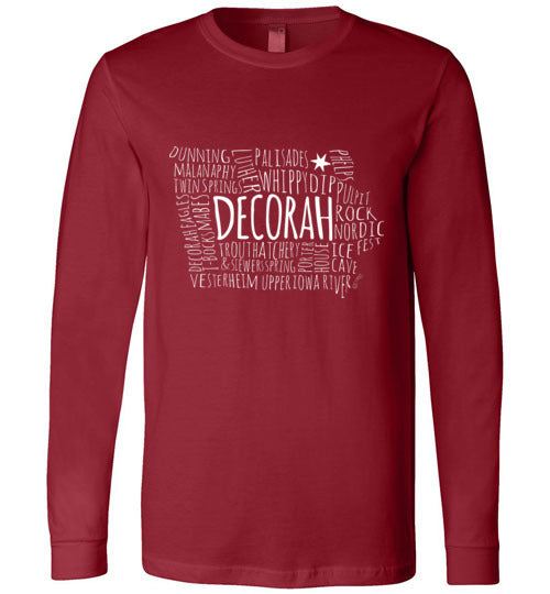 Decorah Iowa Long-Sleeve Shirt White Map Points of Interest