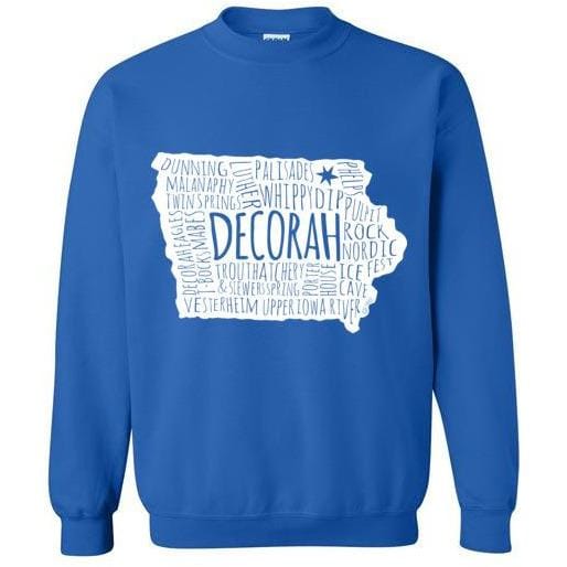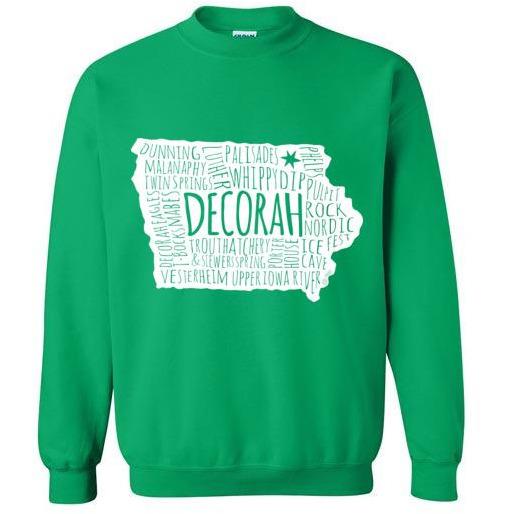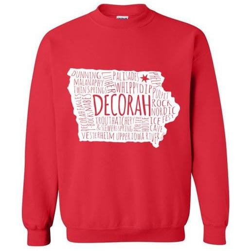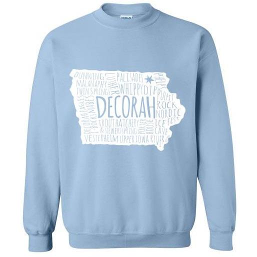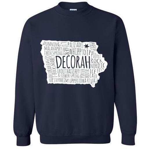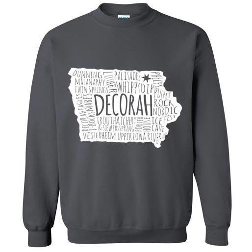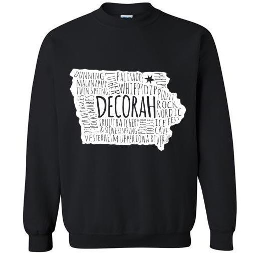 Decorah Iowa Sweatshirt Typography Map White on Dark