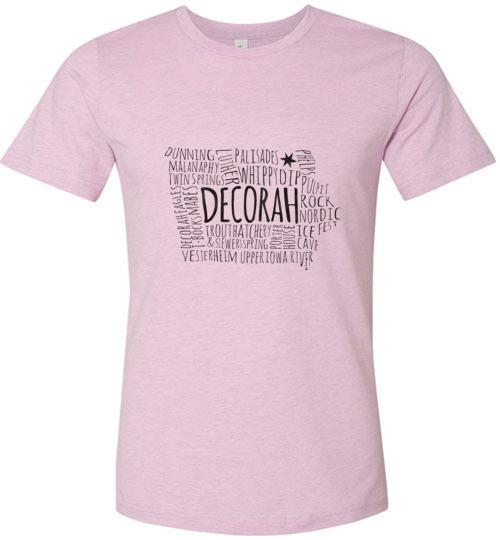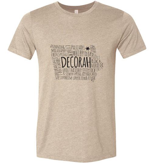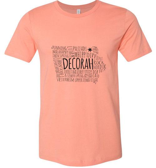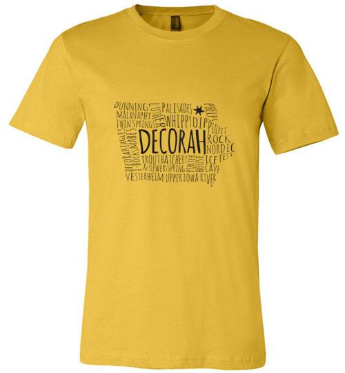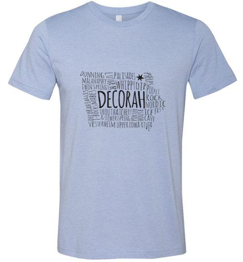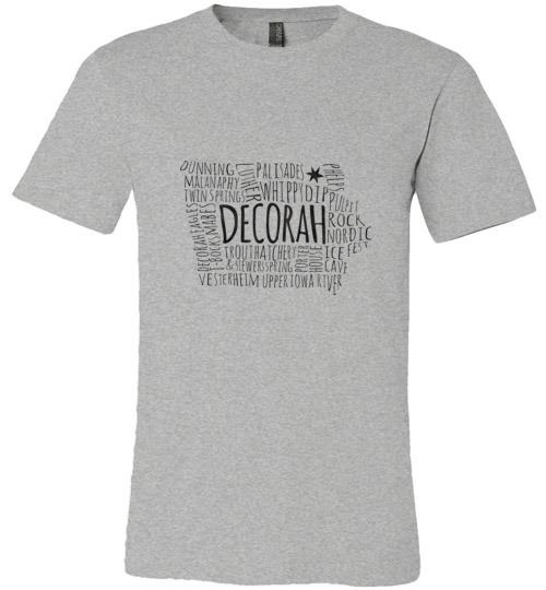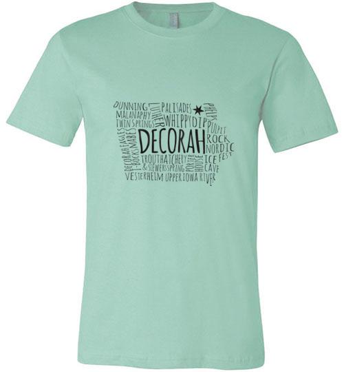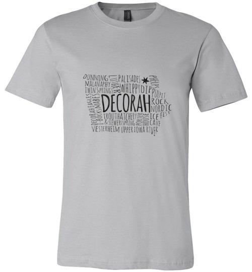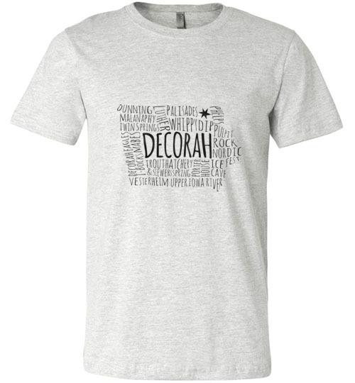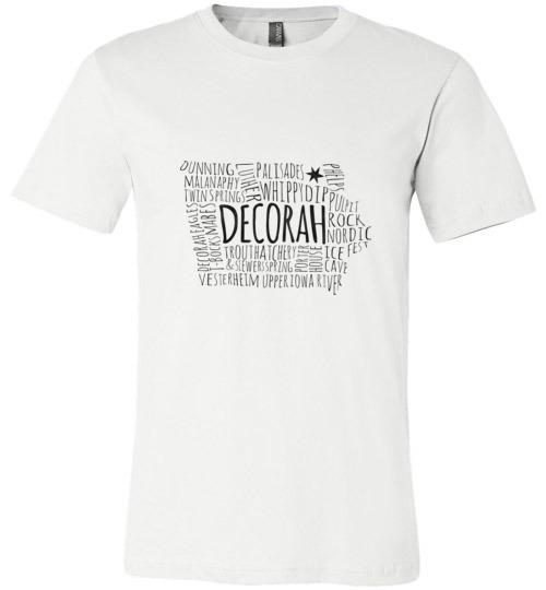 Decorah Iowa T-Shirt, Iowa Map Points of Interest, Black Text, Unisex Shirt