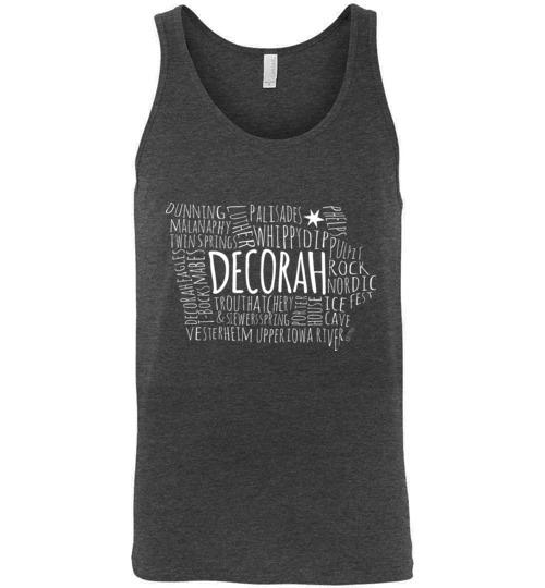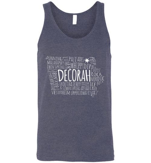 Decorah, Iowa, tank top is 4.2 oz., 100% combed and ringspun cotton, with premium feel and unisex fit.Free standard shipping to continental U.S.