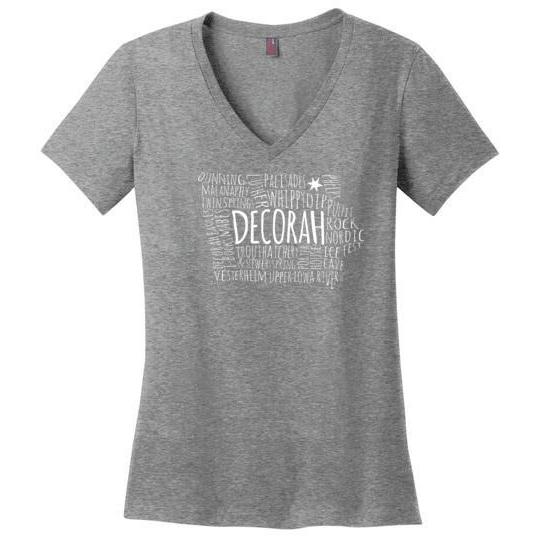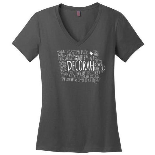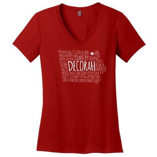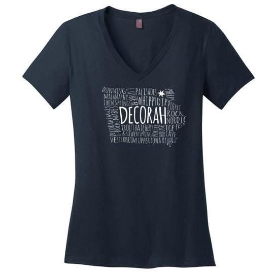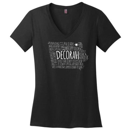Decorah Typography Map Ladies Perfect Weight V-Neck Shirt