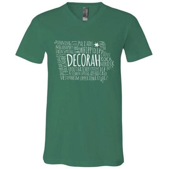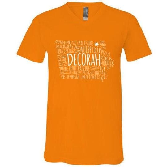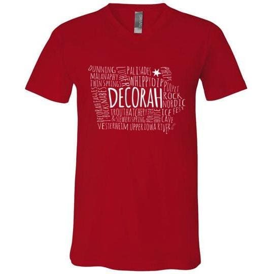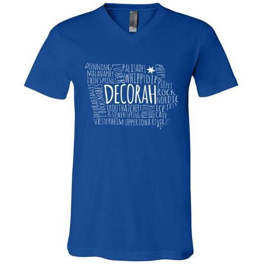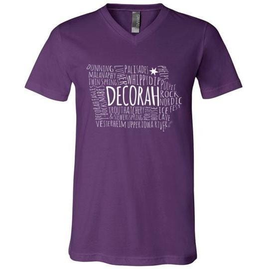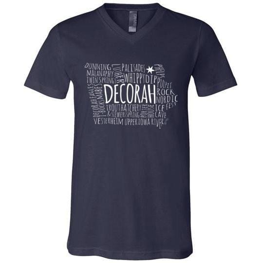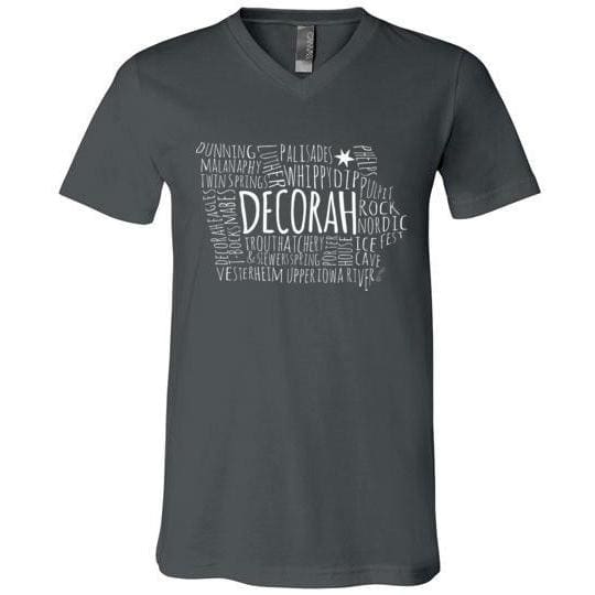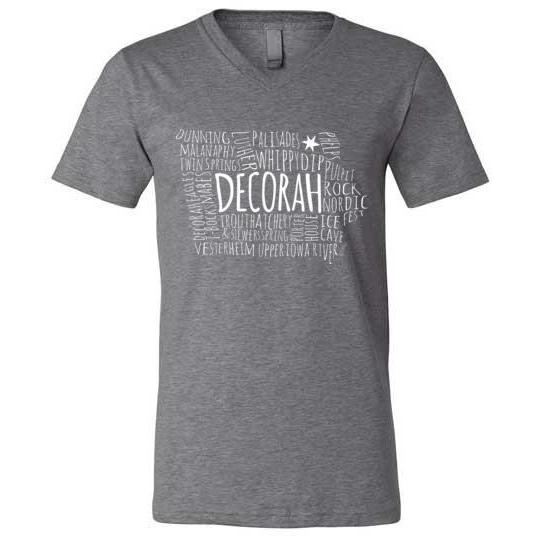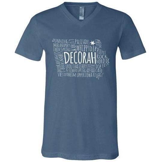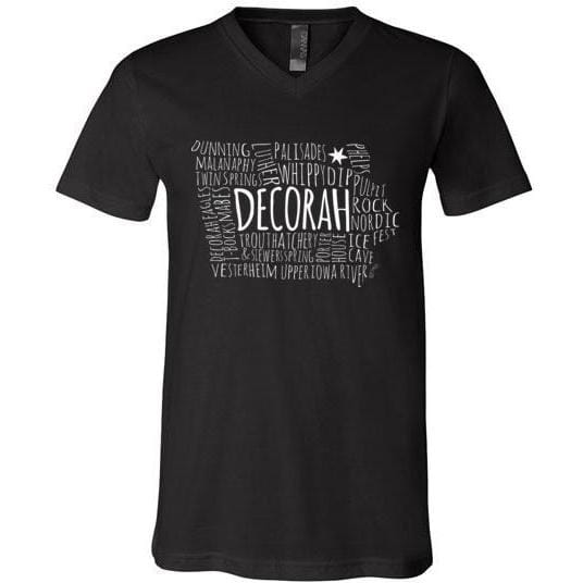Decorah Typography Map Text Only Unisex V-Neck Shirt