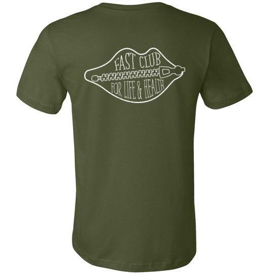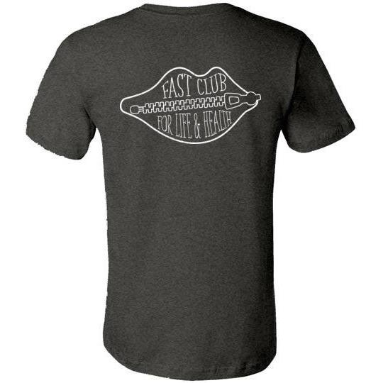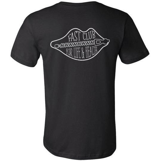 Fasting T-Shirt Fast Club Zipped Lips, White on Dark