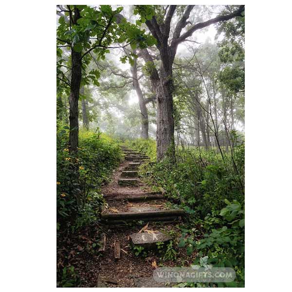 Foggy Garvin Heights Steps Winona Minnesota art print by Kari Yearous. This print is produced on acid-free papers using archival inks to guarantee that they last a lifetime without fading or loss of color. All art prints include a 1" white border around the image to allow for future framing and matting, if desired.