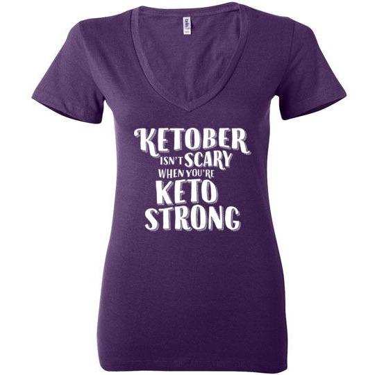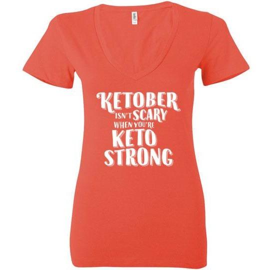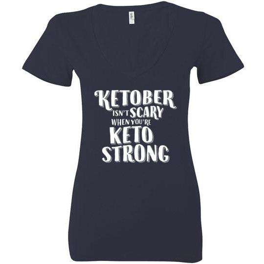 Funny Keto Shirt Ketober Isn't Scary, Bella Ladies Deep V-Neck