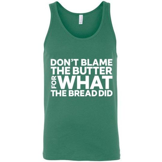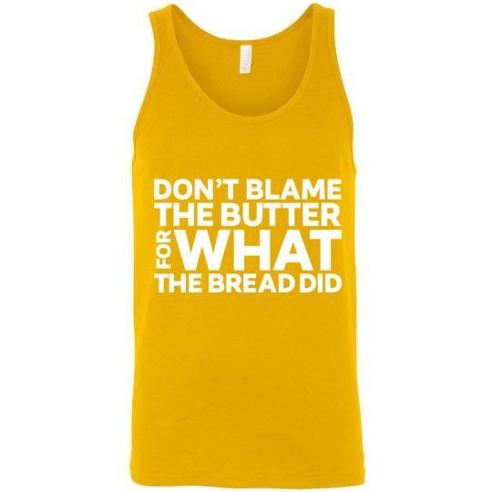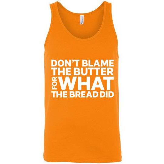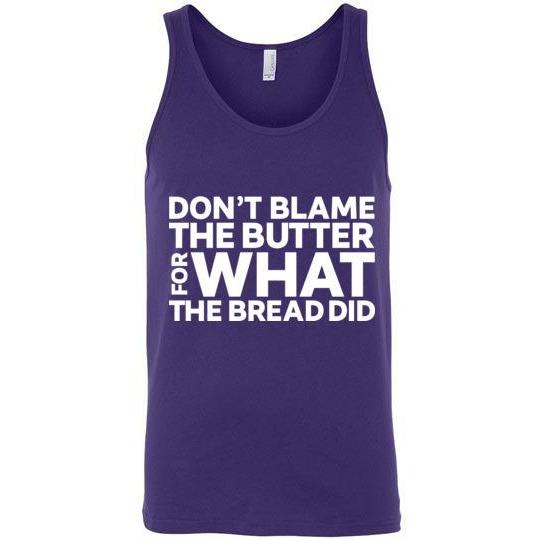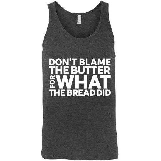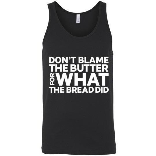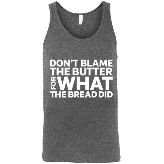 Everyone you meet will see the important message "Don't Blame the Butter for What the Bread Did" when you wear this keto tank top to the gym, the store, or around the neighborhood.