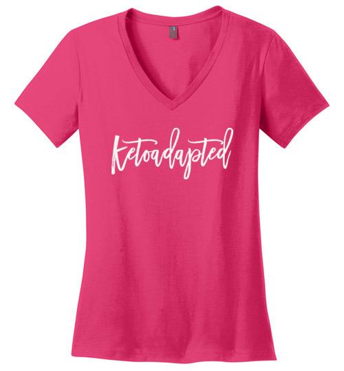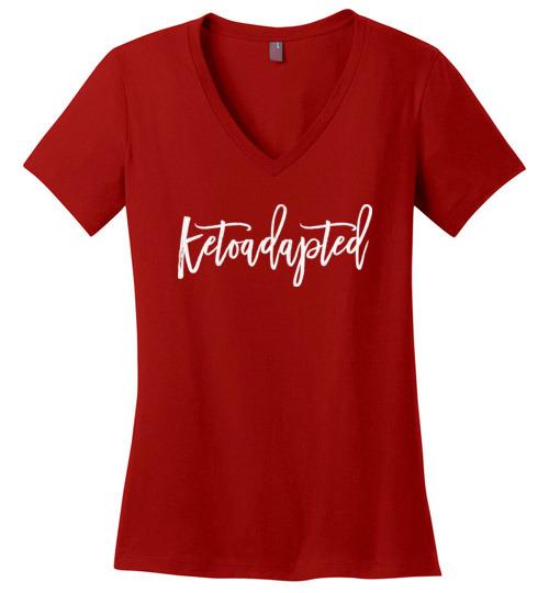 Keto TShirt Ketoadapted, Ladies Perfect Weight V-Neck Ketosis T Shirt