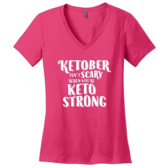 Ketober Isn't Scary Funny Keto T-shirt, Ladies Perfect Weight V-Neck