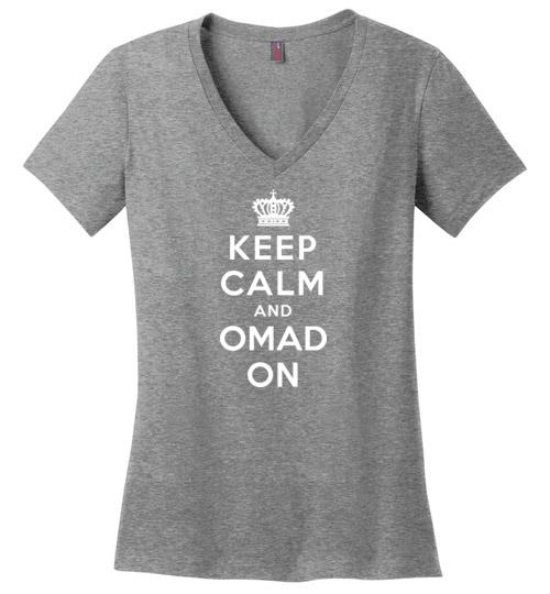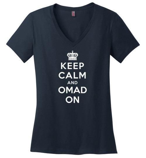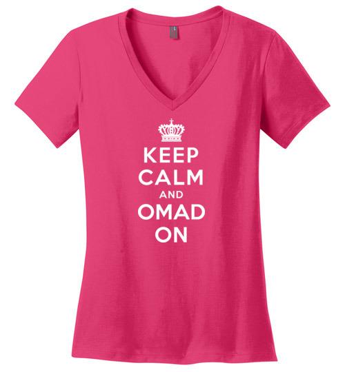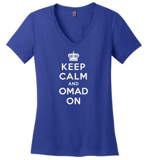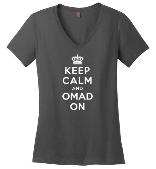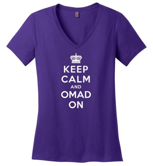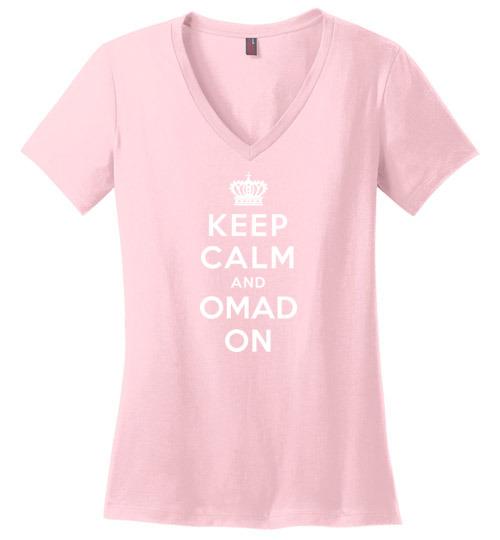 This quality ladies v-neck fasting t-shirt reminds you to trust the process -- Keep Calm and OMAD On.
