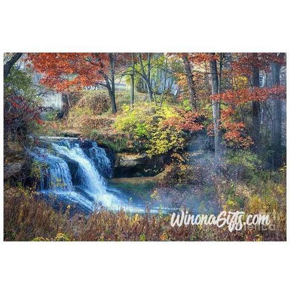 Stunning Pickwick Mill autumn scene featuring the falls at Pickwick Mill in Pickwick, Minnesota. This print makes a great gift for anyone who knows and loves Pickwick Mill.