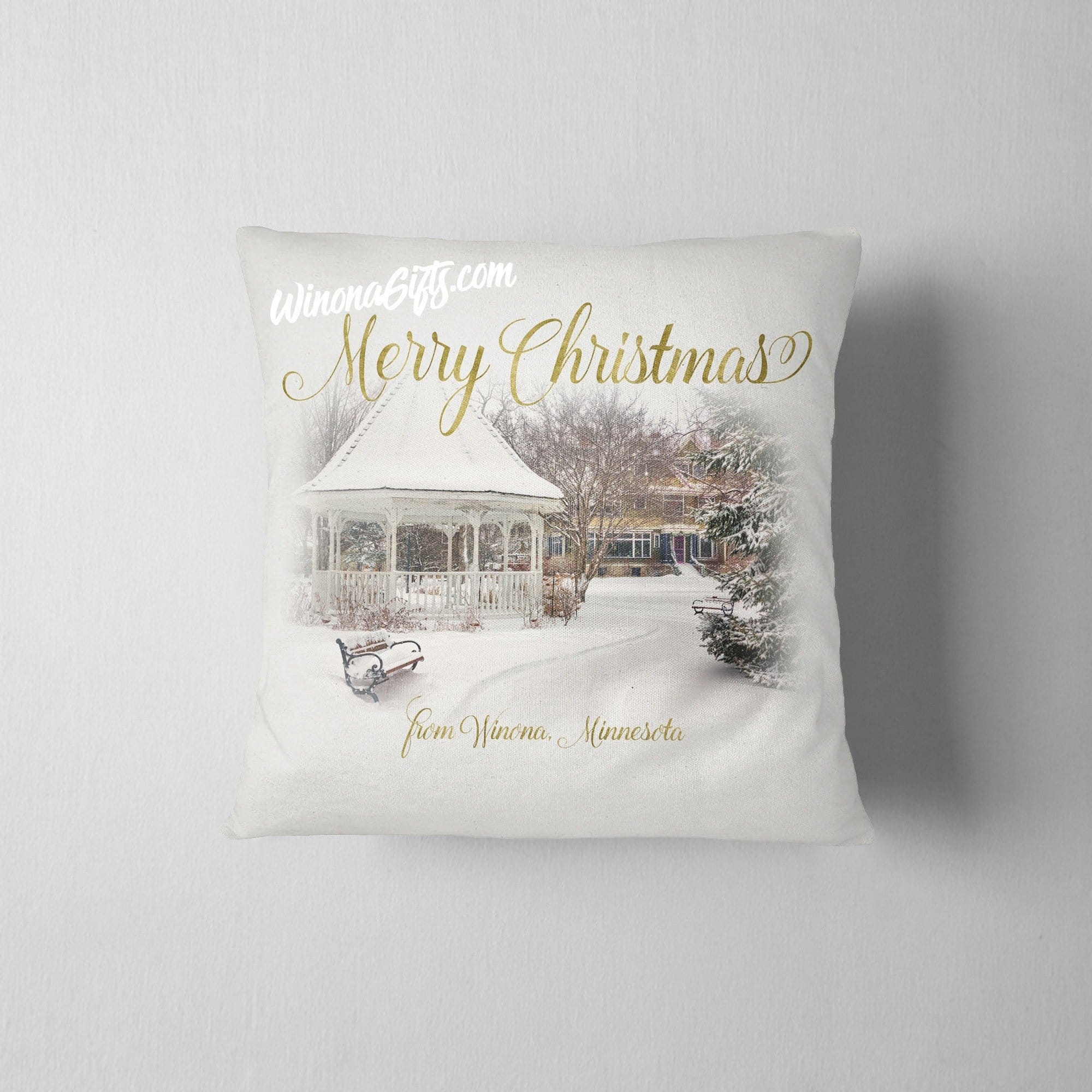 Pillow Merry Christmas from Winona MN Snowy Gazebo