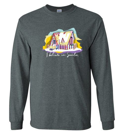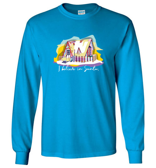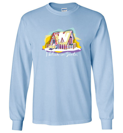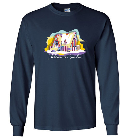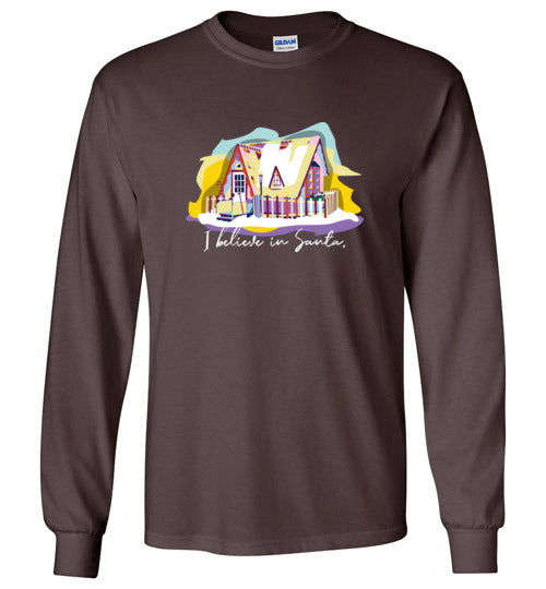 Get into the holiday spirit with this long-sleeved shirt featuring the beloved Santa House of Winona, Minnesota.