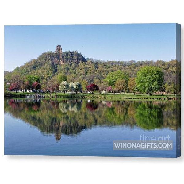 Quality canvas wrap featuring Sugarloaf in Winona, Minnesota, in the springtime. Canvas print is stretched on 1.5" x 1.5" stretcher bars, ready to hang with pre-attached hanging wire, mounting hooks, and nails.