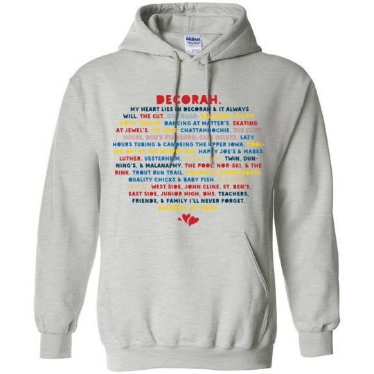 My Heart Lies In Decorah design on Gildan Heavy Blend Hoodie.