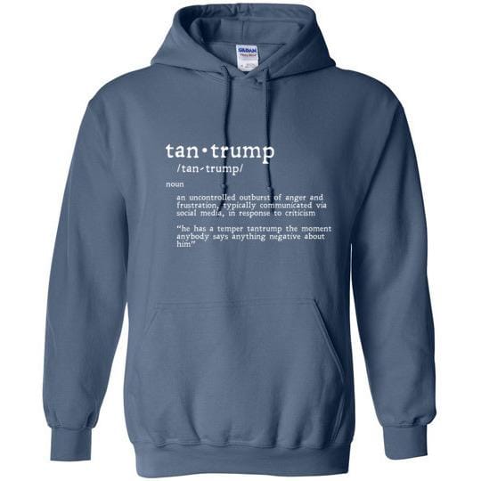 8 oz 50% cotton, 50% polyester. Fits more tightly than many other sweaters.