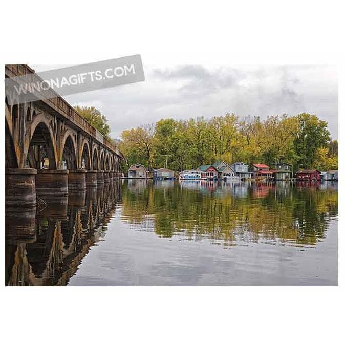 Winona Boathouses With Wagon Bridge Latsch Island art print by Kari Yearous. Our prints are produced on acid-free papers using archival inks to guarantee that they last a lifetime without fading or loss of color. All art prints include a 1" white border around the image to allow for future framing and matting, if desired.