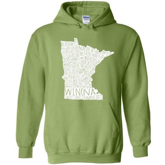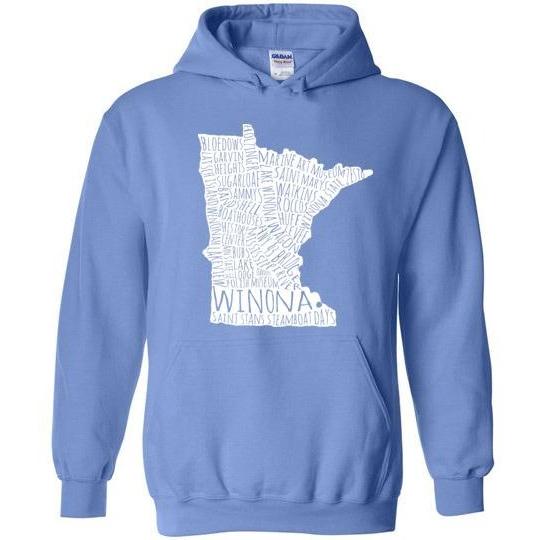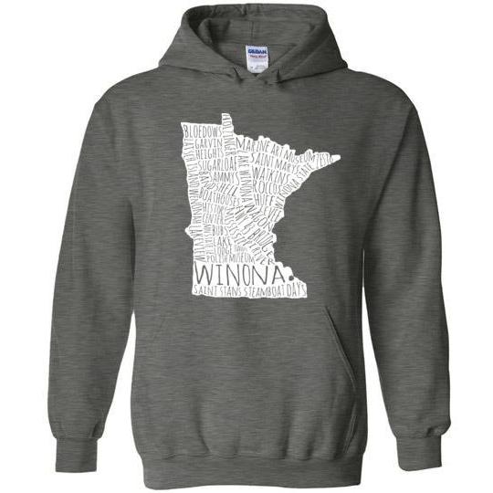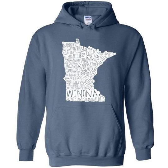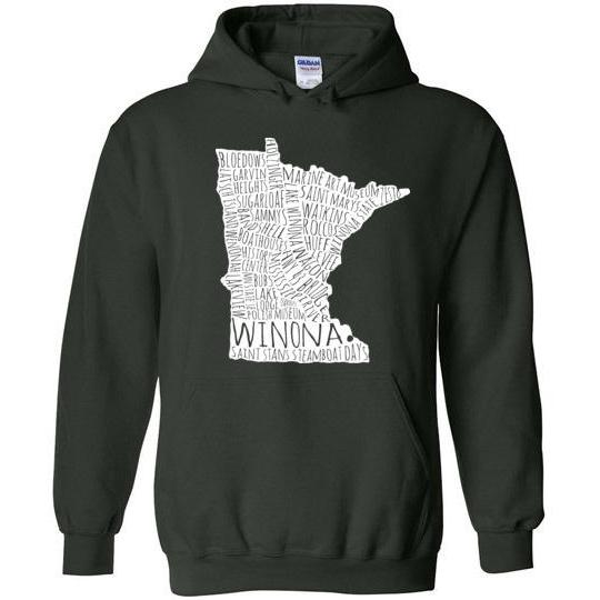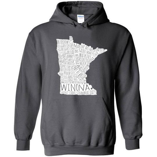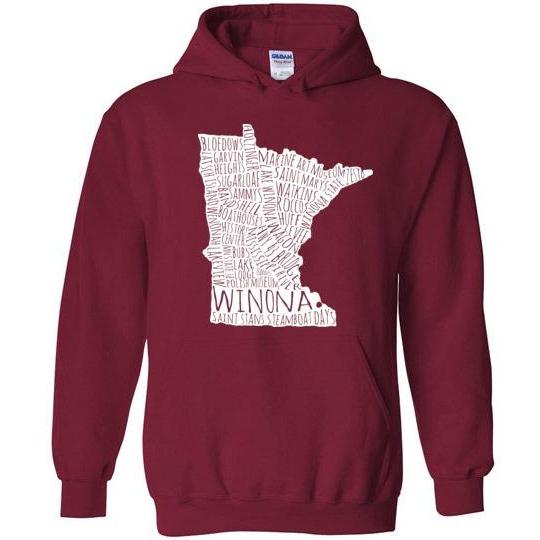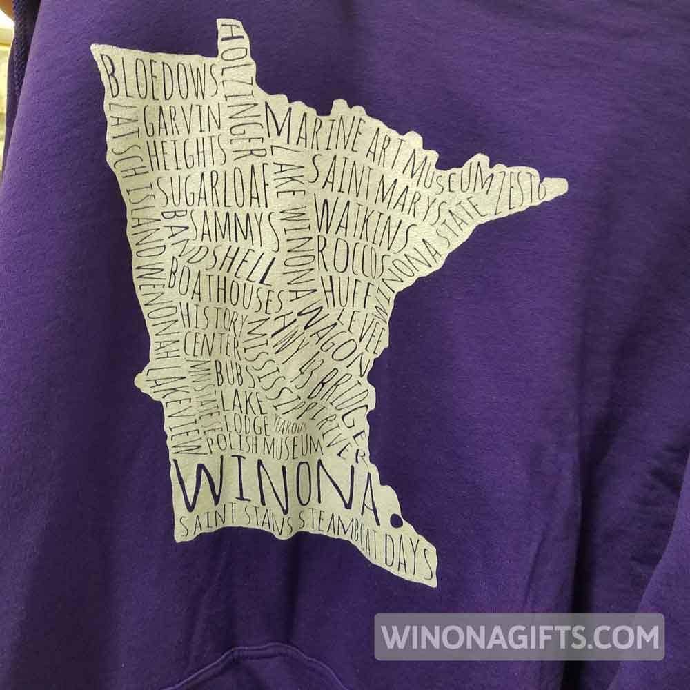 Cozy up with this reminder of all things Winona! Great for falling autumn temperatures.Fits more tightly than many other sweatshirts. Please order accordingly.8 oz 50% cotton, 50% polyester.