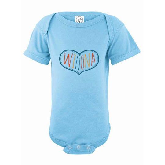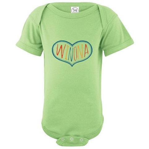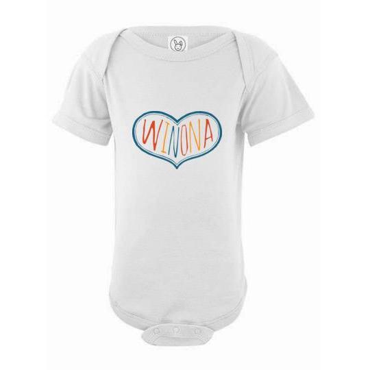 Is there a bundle of joy who needs a sweet little Winona onesie? Look no further -- it doesn't get cuter than this Winona heart design on a quality infant bodysuit.
