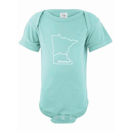 Is there a little one in your life who could use a cute Winona Minnesota onesie? This Winona Minnesota baby onesie comes in so many colors, there's something for every baby's (and mom's and dad's) fancy!