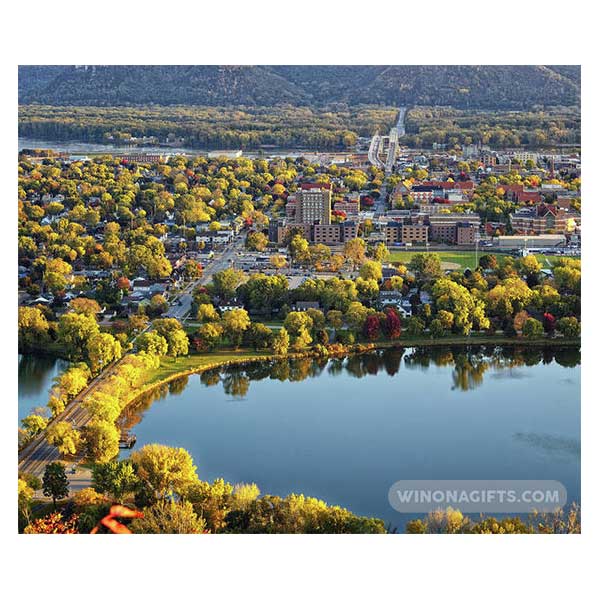 Winona Minnesota in the Fall art print by Kari Yearous. Our art prints are produced on acid-free papers using archival inks to guarantee that they last a lifetime without fading or loss of color. All art prints include a 1" white border around the image to allow for future framing and matting, if desired.