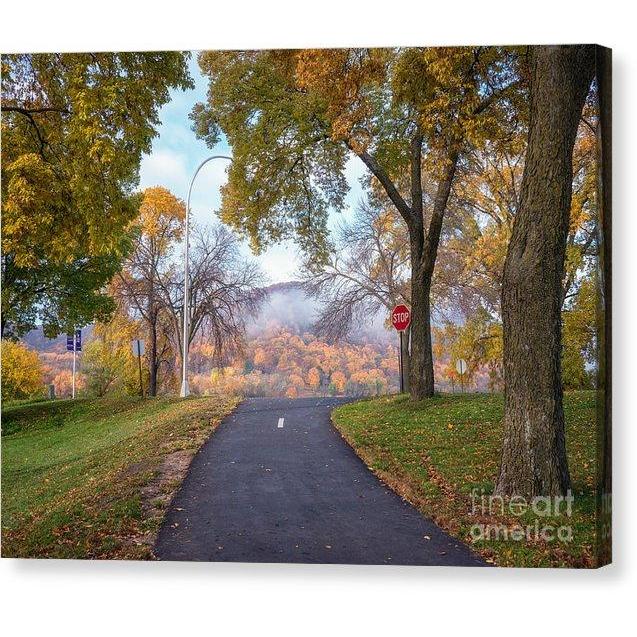Bring your artwork to life with the texture and depth of a stretched canvas print. This autumn Winona Minnesota photograph is printed onto a premium canvas and then stretched on a wooden frame of 1.5" x 1.5" stretcher bars. Your canvas print will be delivered to you "ready to hang" with pre-attached hanging wire, mounting hooks, and nails.