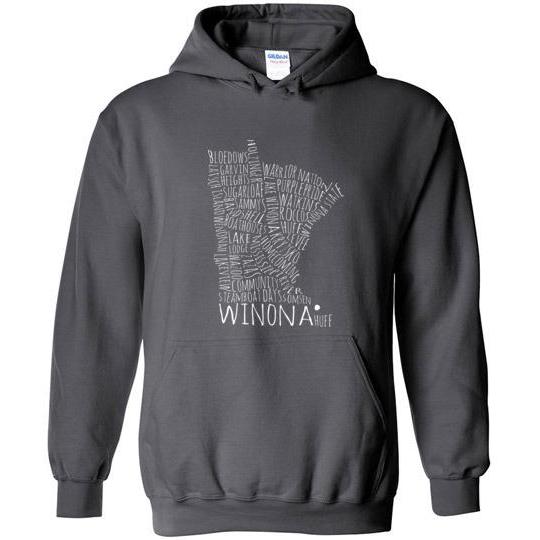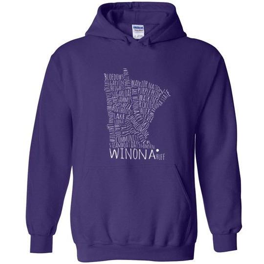 This playful Winona sweatshirt features big-school favorites such as Somsen, Kryzsko, and more.