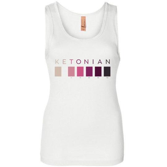 A quality, fitted women's keto tank top featuring the ketonian design with ketone test strip colors. Please note that this design shows up best on a white shirt. Choose other colors with the understanding that some of the design may blend in somewhat with the fabric.